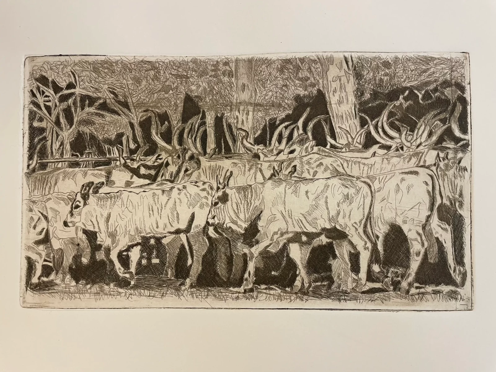 Sono esposte anche alcune incisioni calcografiche all’acquaforte, a puntasecca ed a cera molle.